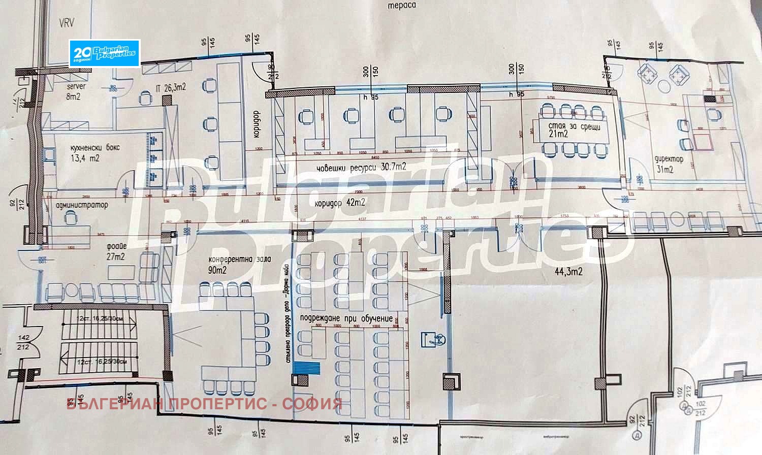 Имотът е разположен на трети етаж с площ 423 кв. м. и се състои от едно отворено пространство с възможност за преграждане на отделни работни помещения, възможност за изграждане на кухненски бокс и общ санитарен възел на етажа.