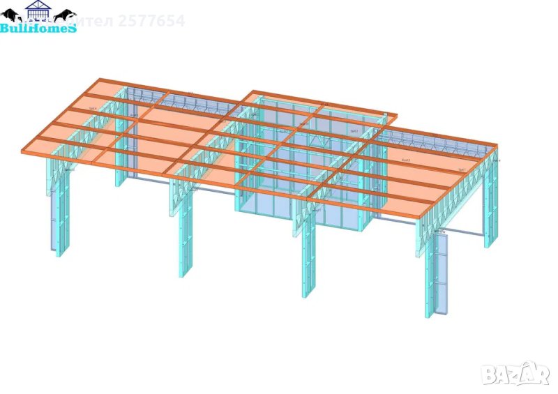 Конструкция за Автомивка - 131м2 - 15,4м х 8,5м - етап Конструкция - готови за сглобяване профили.