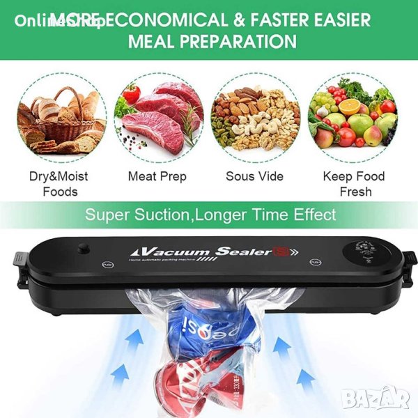 Машина за вакуумиране на опаковки TV159B. Страхотна, гъвкава машинка с която можете лесно да вакуумирате своите опаковки. Ако ви е омръзнало от развалящата се храна или трудното съхранение на всеки един продукт. А може би се чудите, как да ги разделите, тогава определено този продукт е за вас. Вакуумира месото, рибата, зеленчуците, бобовите храни за едно още по-добро съхранение на продуктите. Благодарние на уплътнителя който е изработен от висококачествена ABS пластмаса, с 2 в 1 двоен режим, го прави подходящ за сухи и влажни храни. С тази машинка това се случва много лесно, бързо и гъвкаво. Съхранете храната и продуктите си по най-добрия начин, използвайки това невероятно устройство. Работи на ток, с щепсел