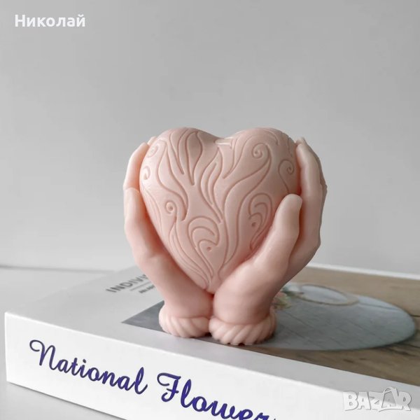 Силиконов молд за свещи сърце с ръце, за свещ сапун фондан сърца с ръка ароматни свещи