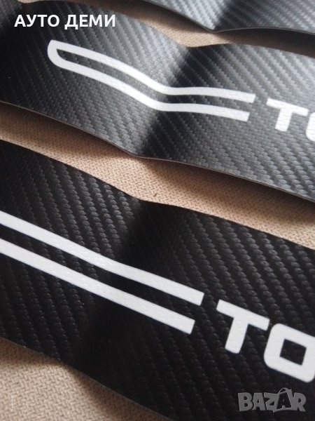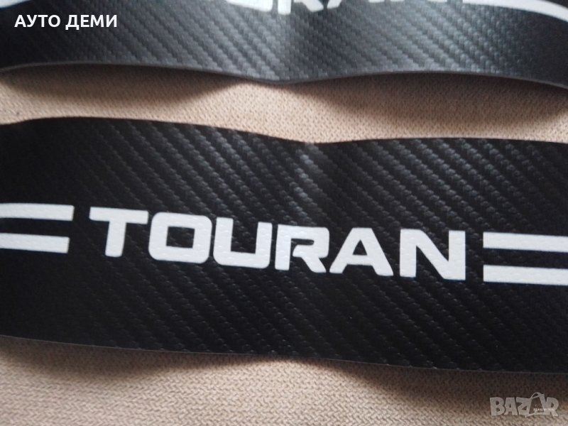 Цена за комплект от 4 броя черен карбон стикери с лого и надпис Touran - 28 лв.