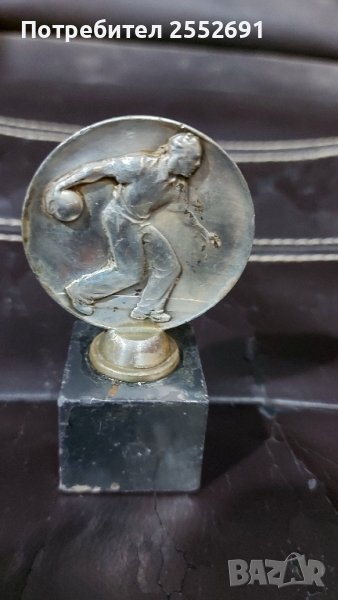 Метална статуетка на игрч на боулинг. Плътна метална основа. Височина-8,5см.