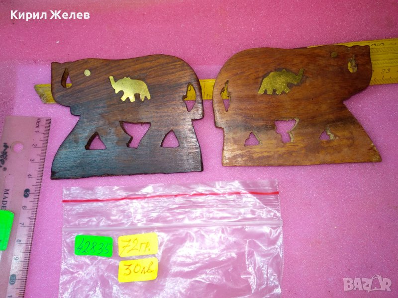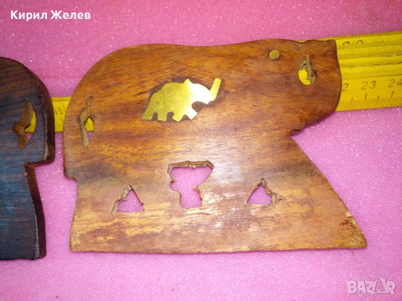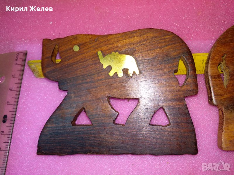 2 СТАРИ АЗИАТСКИ СЛОНЧЕТА АРТ ПАНО от САНДАЛОВО ДЪРВО и МЕСИНГ РЪЧНА ИЗРАБОТКА 42835
