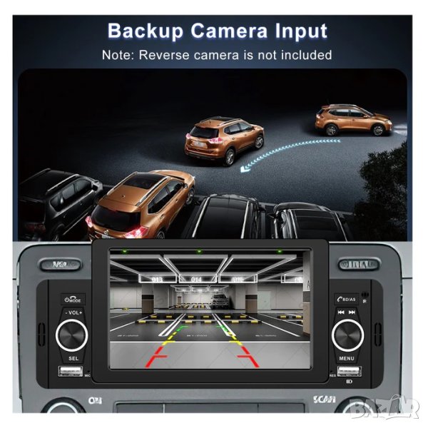 5. Поддръжка на функция за свързване на камера за обратно виждане (по избор): Камерата се включва автоматично, когато колата е на задна предавка, автомобилният стерео монитор автоматично ще се обърне към изображението за заден ход