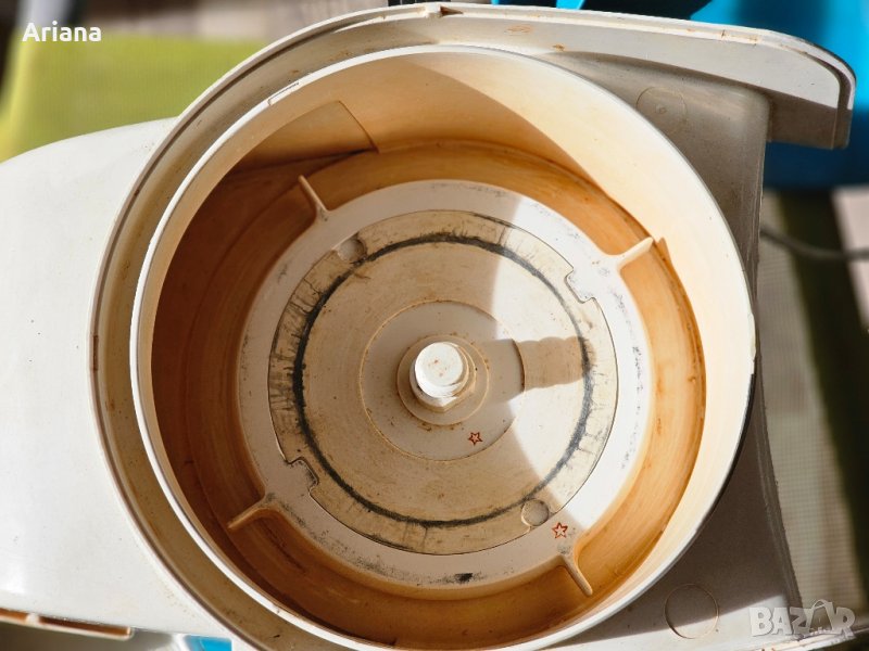закупена от СССР с мощен мотор и допълнителни рендета с дебели и здрави дискове, показани на снимката. Работи безупречно и с твърди зеленчуци.