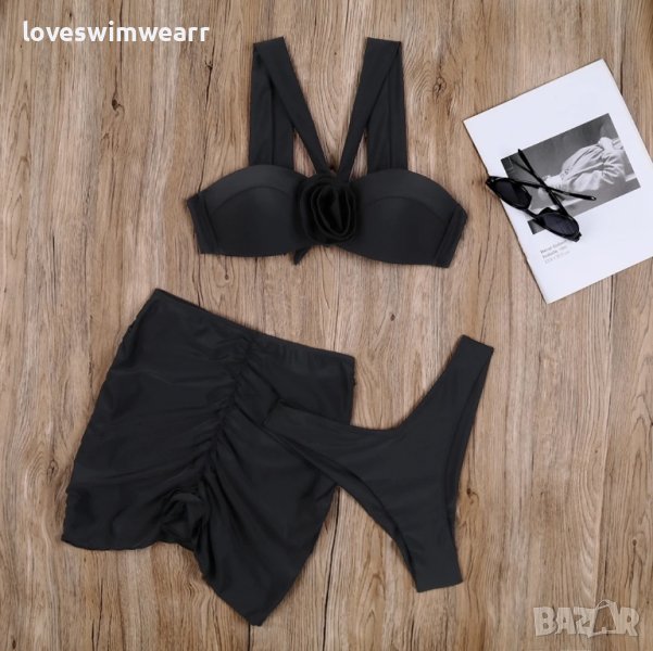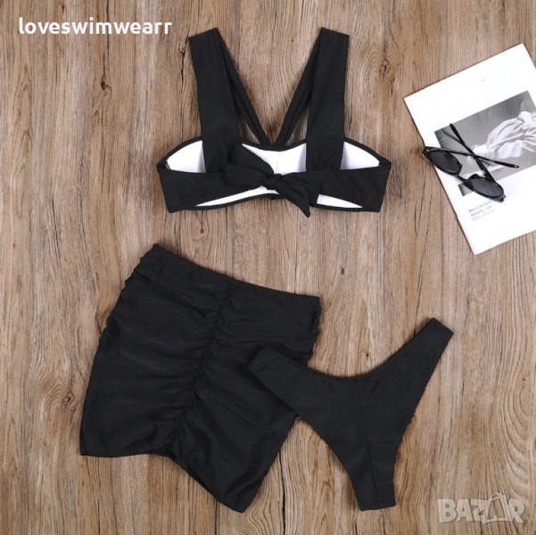 Бански с твърди чашки, долнище бразилияна + пола.