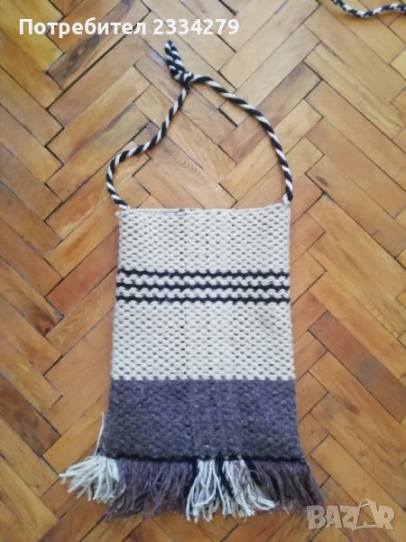 Стара овчарска коледарска торба, изработена от чиста вълна на ръчно тъкан дървен стан. Размери: 50х40см.,цена 15€. Вече е намалена!!! По малката е с цена 10€. Красиво допълнение към фолклорна мъжка носия или декорация на битова къща, механа, витрина.