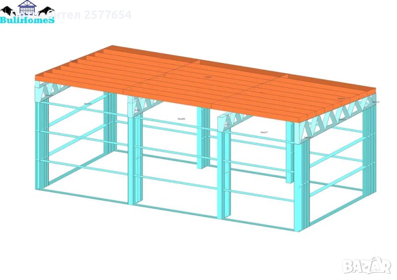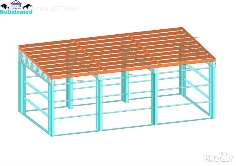 Хале, склад 40м2 - 8.00м х 5.00м - етап Конструкция - готови за сглобяване профили.