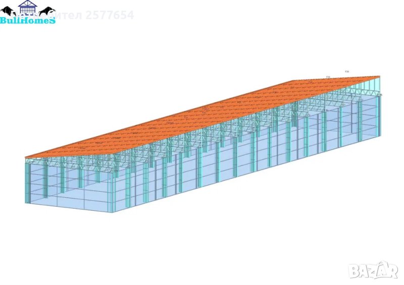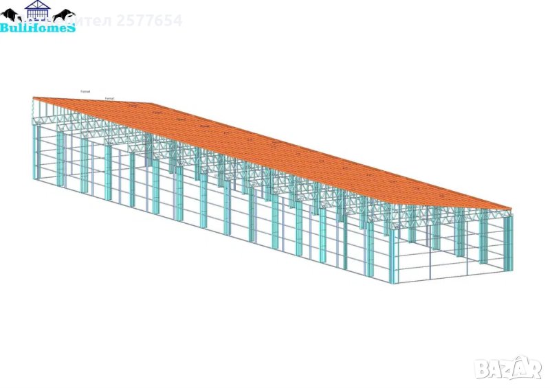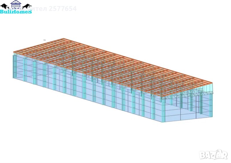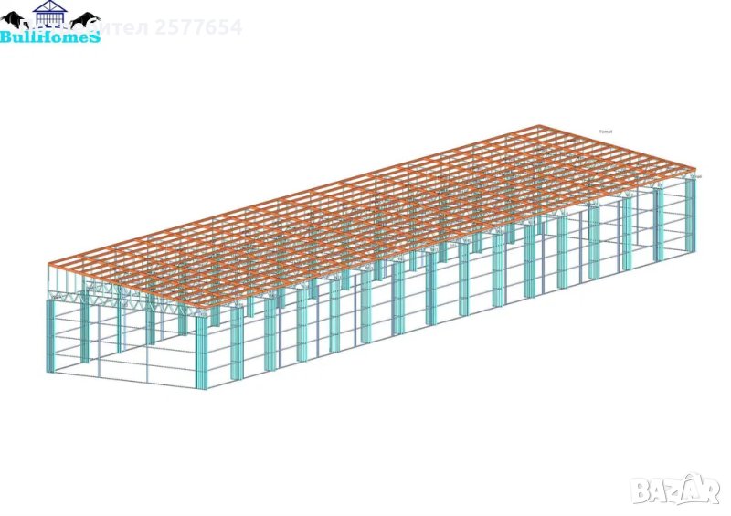 Конструкция за Хале, склад 500 м2 - 10.00м х 50.00м х 4.00м- етап Конструкция - готови за сглобяване профили.