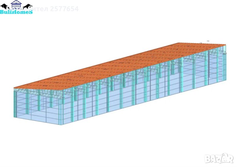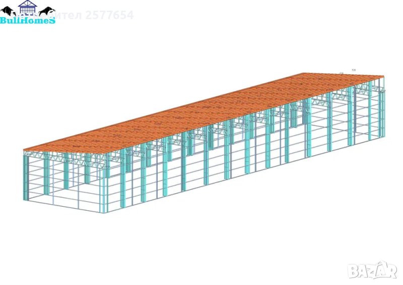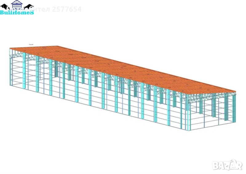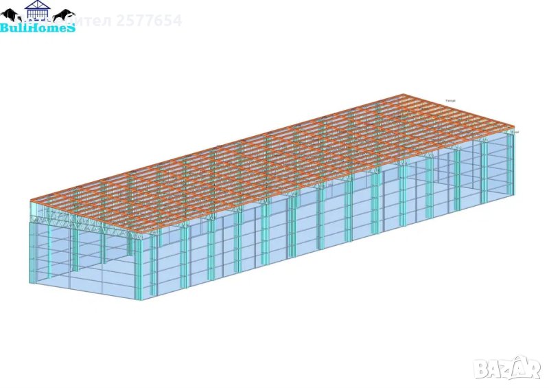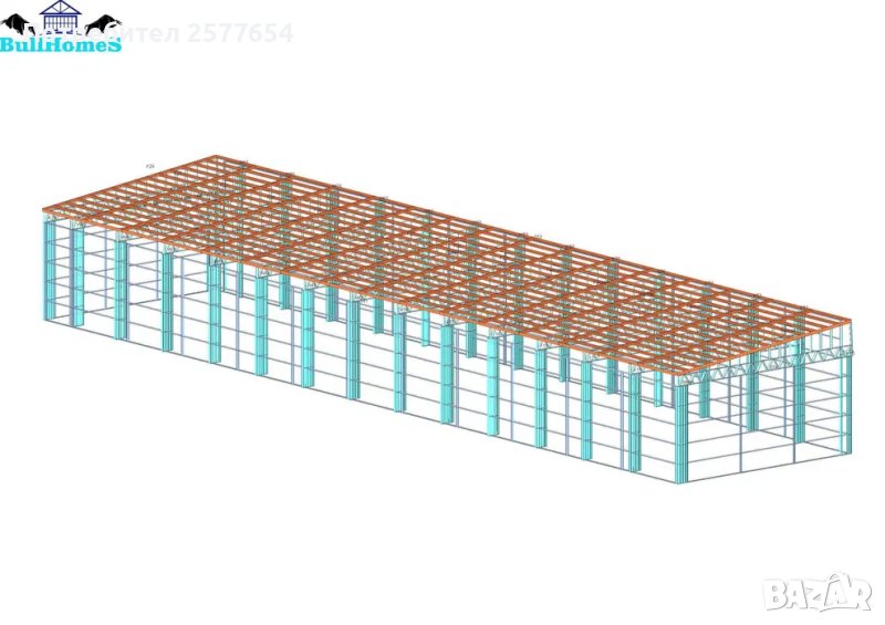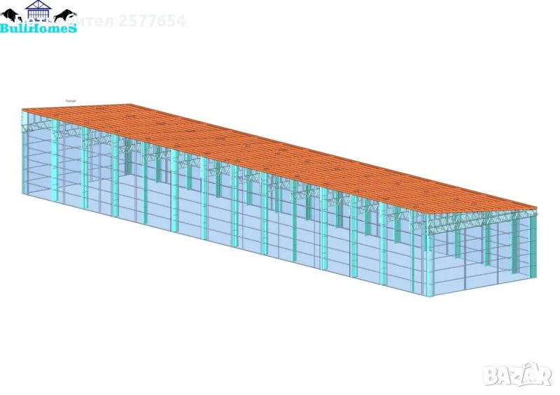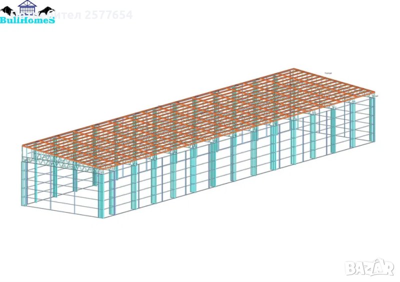 Конструкция за Хале, склад 450м2 - 10.00м х 45.00м х 4.50м- етап Конструкция - готови за сглобяване профили.
