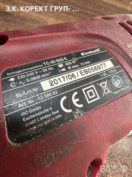 Ударна бормашина TC-ID 650 E в добро състояние и отлична работа на машината, продава се без куфар. Изпращам по Еконт с опция преглед и тест, за гард Варна може лично предаване.