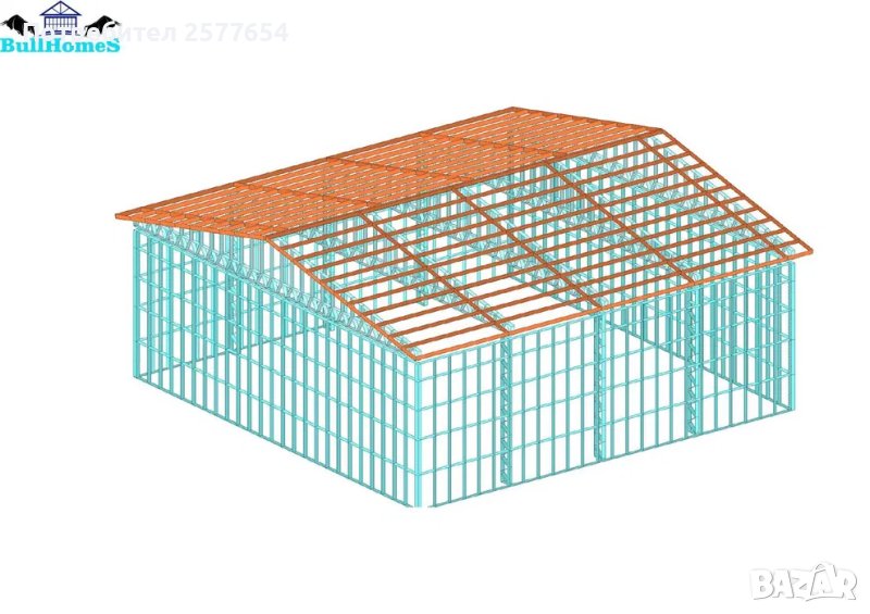 Конструкция за Хале,Склад 225м2-15.00м х 15.00м - етап Конструкция - готови за сглобяване профили.