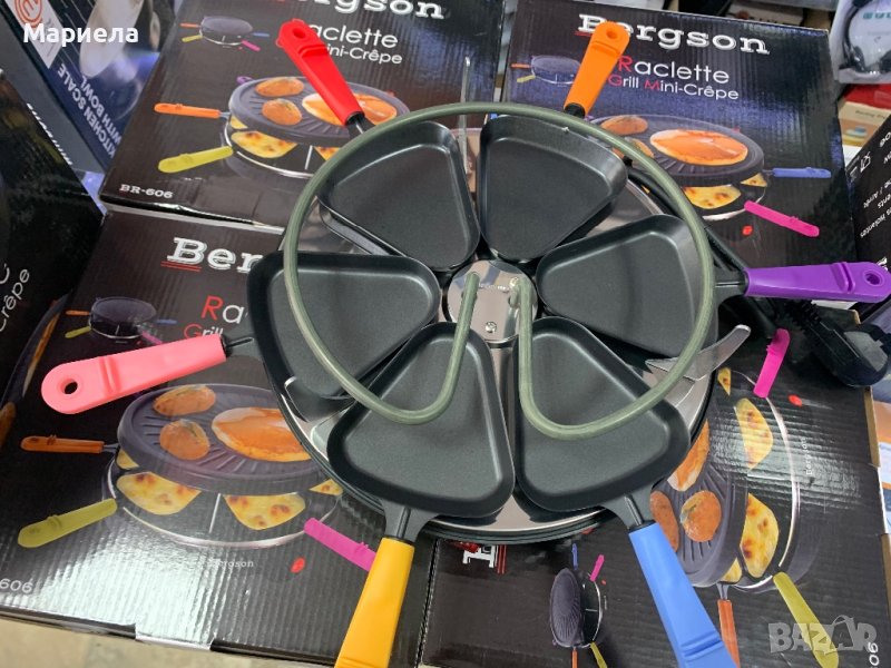 Уредите са нови и са закупени от Германия .С този гурме грил/раклет ще се насладите на фантастична вечер със семейството или приятелите си. Можете да приготвите храната заедно и всеки ще получи точно това, което иска. Вкусна и безгрижна вечеря за до 6 души.