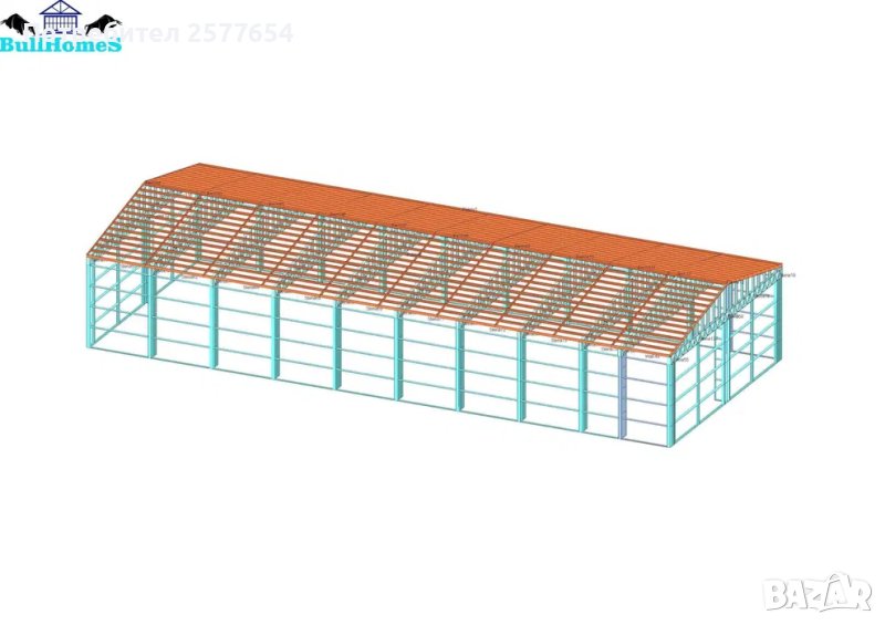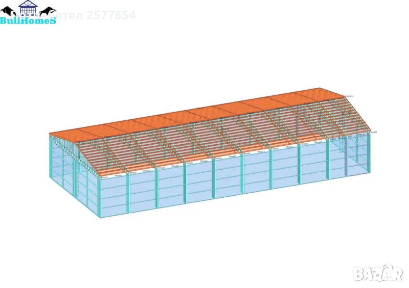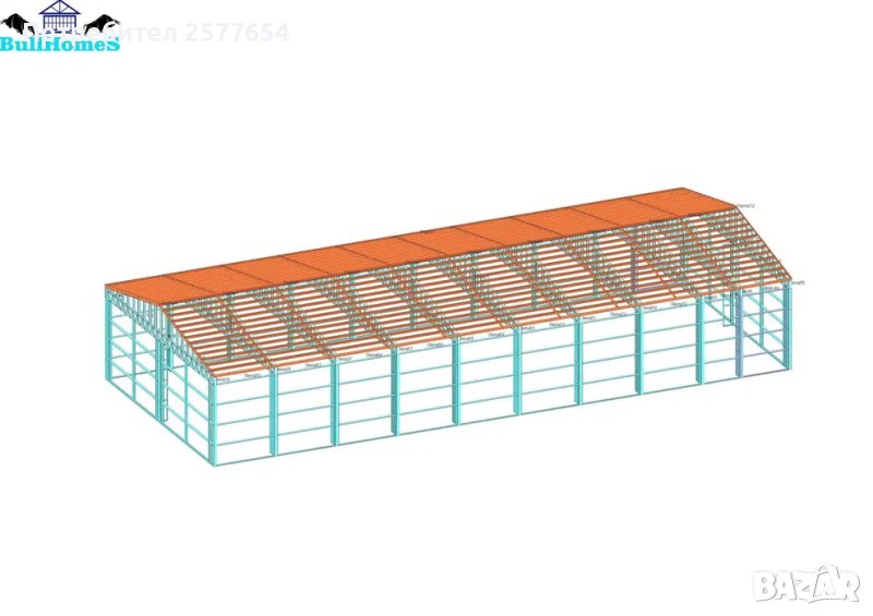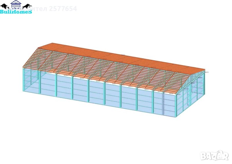 Конструкция за Хале, склад 348м2 - 12м х 29м х 4м - етап Конструкция - готови за сглобяване профили.
