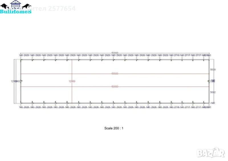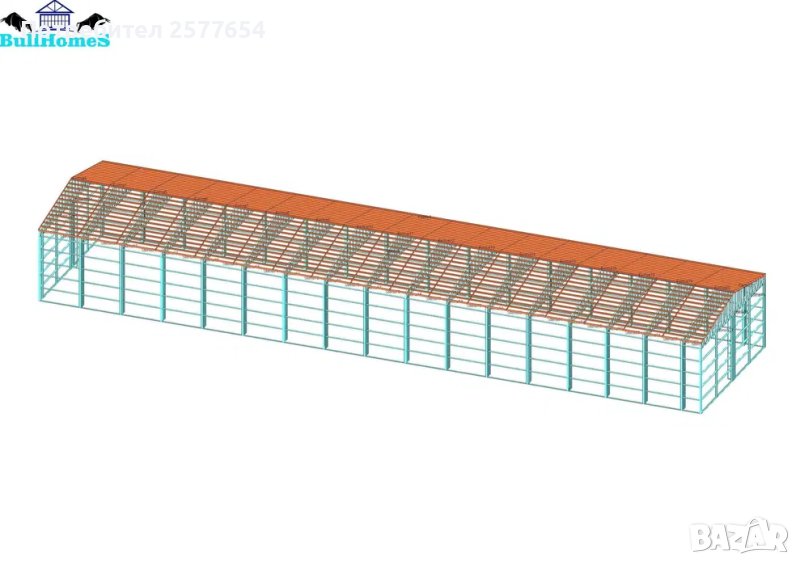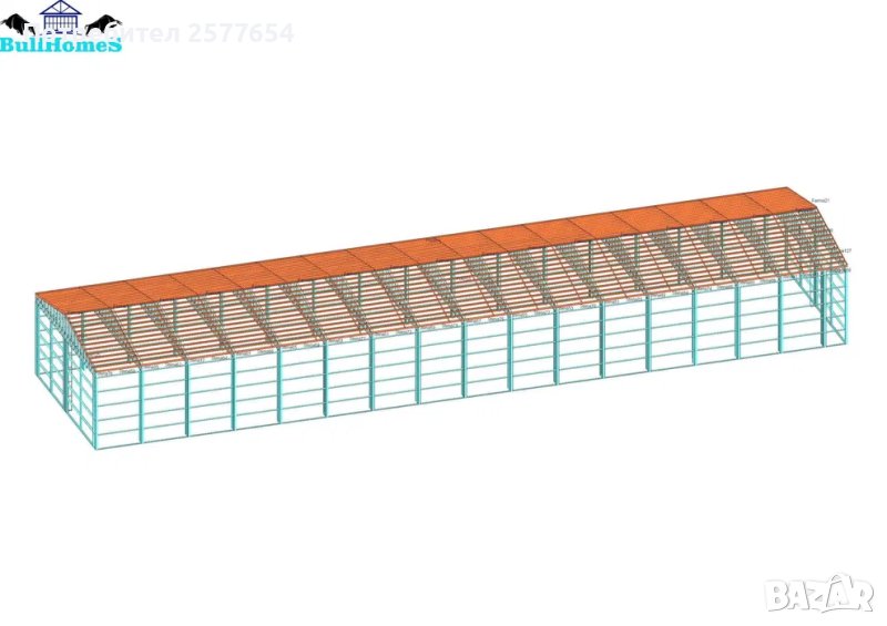 Конструкция за Хале, склад 600м2 - 12м х 50м х 5м - етап Конструкция - готови за сглобяване профили.