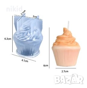 3D десерт сладкиш кекс кексче с крем мъфин силиконов молд форма за свещ сапун смола гипс шоколад → Обява 44197338