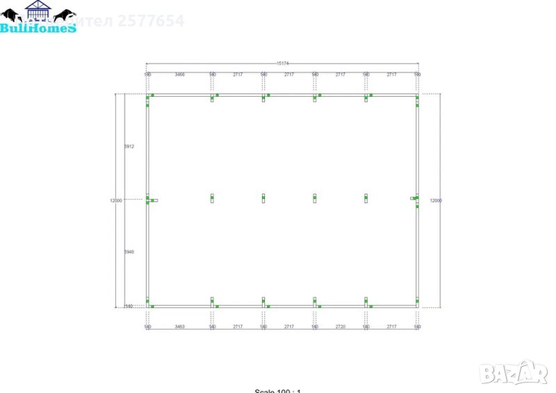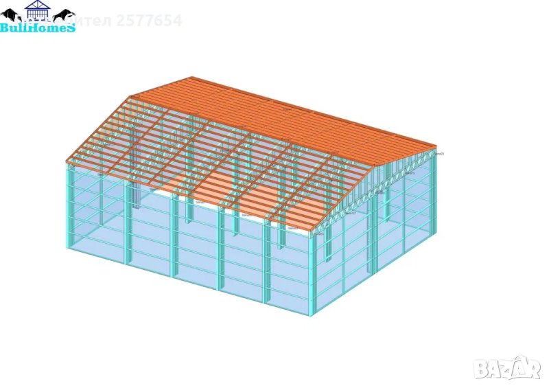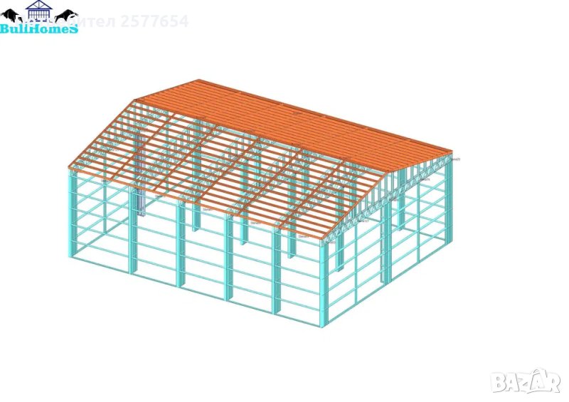 Конструкция за Хале 180м² - 15м х 12м х 4.5м - етап Конструкция - готови за сглобяване профили.