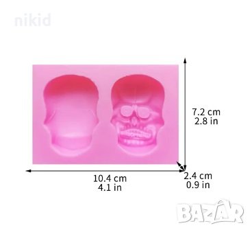 Череп глава лице гръб скелет силиконов молд форма форнан гипс шоколад декор украса → Обява 44197781