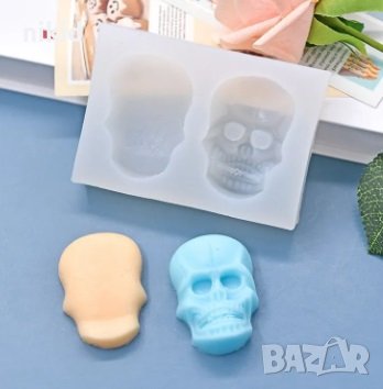 Череп глава лице гръб скелет силиконов молд форма форнан гипс шоколад декор украса