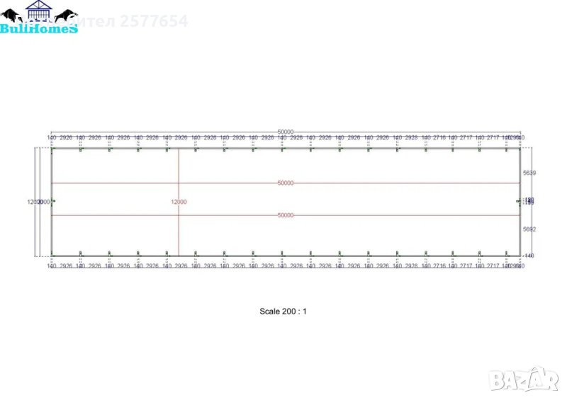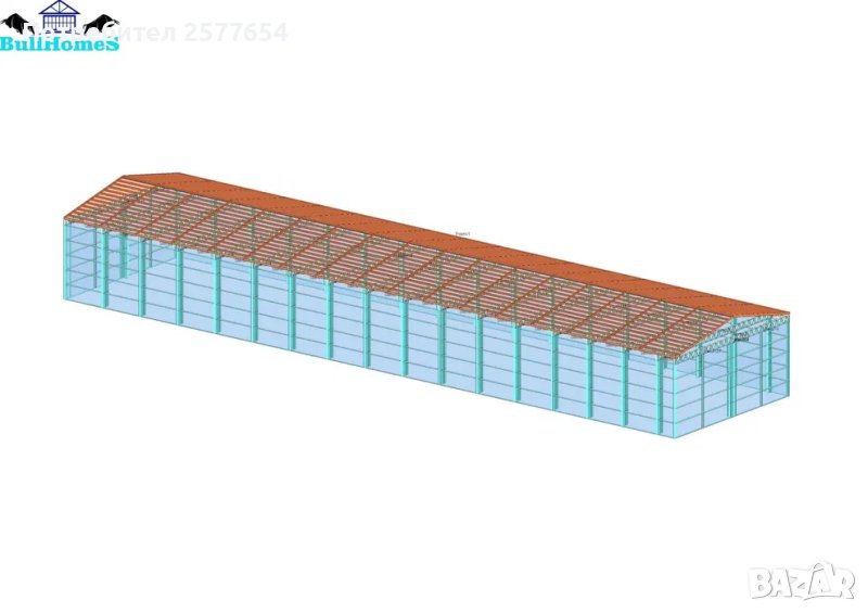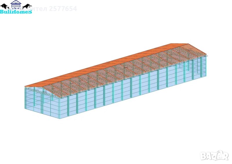 Конструкция за Хале 600м2 - 12м х 50м х 5м - етап Конструкция - готови за сглобяване профили.