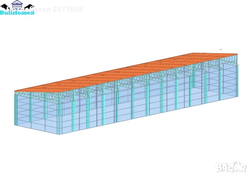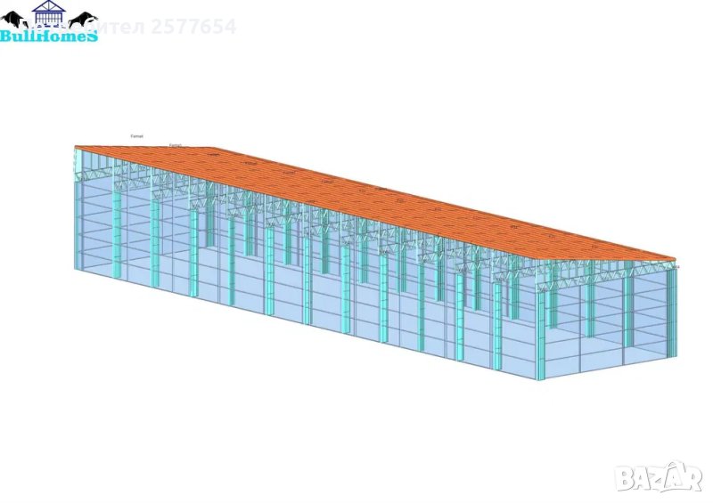 Конструкция за Хале, склад 800м2 - 10.00м х 80.00м х 5.00м- етап Конструкция - готови за сглобяване профили.