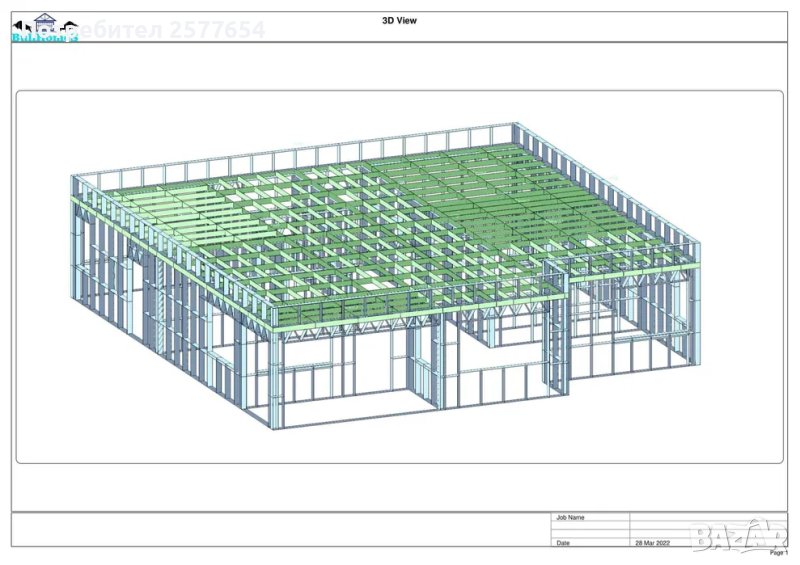 Конструкция за бунгало / преместваема къща - 160м2 с три спални - етап Конструкция - готови за сглобяване профили.