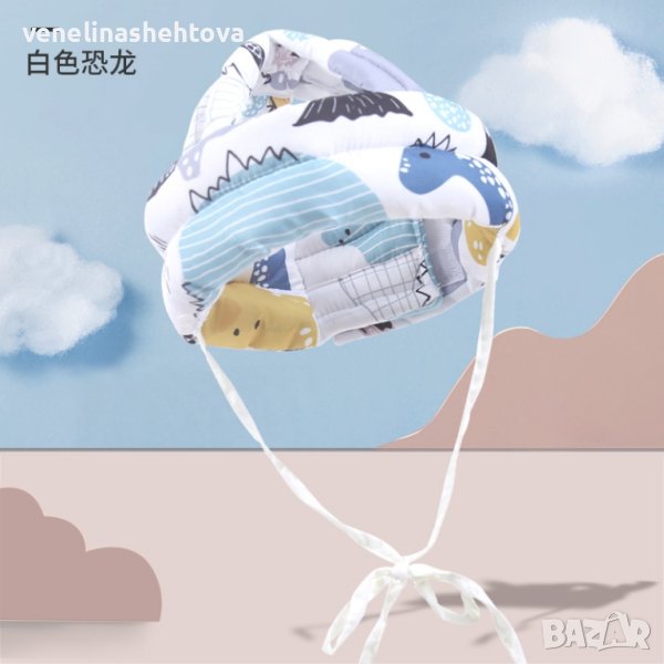 360° предпазваща шапка за бебета против нараняване, докато пълзят, играят и се опитват да прохождат. Предпазната шапка може ефективно да защити бебето по време на сблъсъка и триенето по време на падане,причинено от удара при падането. Тя ефективно омекотява, предотвратява или намалява нараняването на главата на бебето. Възможност за регулиране, което я прави подходяща от раждането на бебето до 24 м.. Изработена от 100 % памук, а вътрешното уплътнение от специална гъба, която дава. увереност на малките деца, че са защитени.Материал :памук и полиестерРазмери :20*18см.Налична в два забавни десена, розова гора и бял динозавър.Изпращаме с опция преглед и 10 % отстъпка от цената на доставката до еконт.