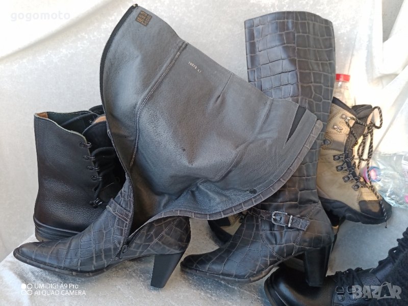 Номера по етикет е EUR - 41, стелката измерена е 27,5, но те са шпиц и полезната СТЕЛКАТА измерена е 26 см.,т.е. отпред 1.5 см е неизползваемо, високи са 48 см., обиколка горе 39 см. + разширител ,ток - 6 см., обиколка при глезена 27 см. Всички други обувки на снимките 40 - 41 номер. Тези ботуши в мола струват 300$, ето тук : https://www.deroosschoenen.nl/via-vai-laars-avery-kace-59022-02-900-zwart.html