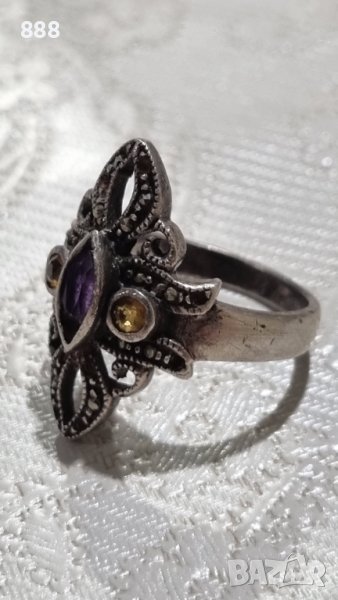 Vintage сребърен пръстен 925 с маркизити, аметист и топази , налична маркировка . Диаметър 19 мм . За повече информация разгледайте снимките .