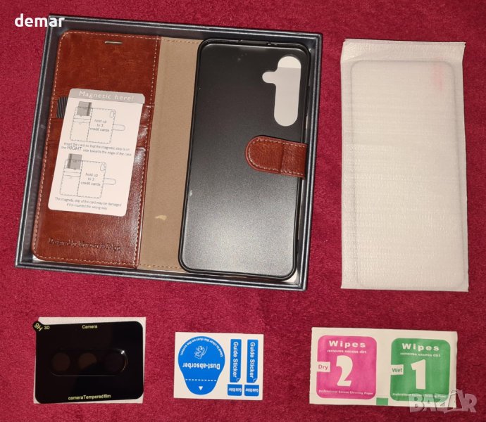 Създаден специално за Samsung Galaxy S24+ Plus 5G 6,7 инча, нашият флип фолио кожен калъф-портфейл предлага не само стил, но и функционалност със своите слотове за карти, джоб за пари, протектори за екран и лещи, осигуряващи цялостна защита. Той разполага с технология за блокиране на RFID за защита на личните данни, прецизна изработка с първокласна изкуствена кожа за 360° защита и издръжлива двуслойна конструкция, която издържа на изпускане и пръски. Свръхздравото магнитно затваряне гарантира безопасността на вашия телефон, докато универсалната функция на стойка подобрява изживяването ви при гледане, превръщайки го в перфектна комбинация от удобство и елегантност.
