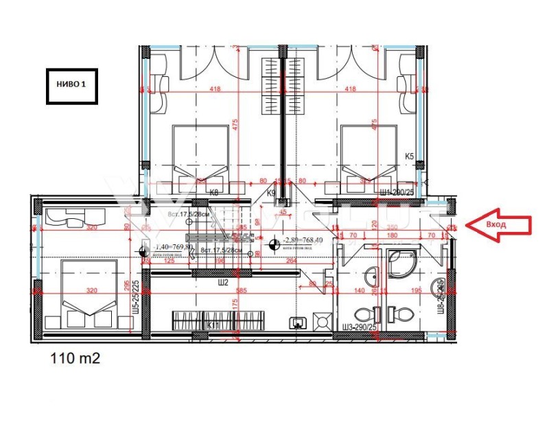 -Четири спални /2 х 25 кв.м./ и /2 х 15 кв.м./