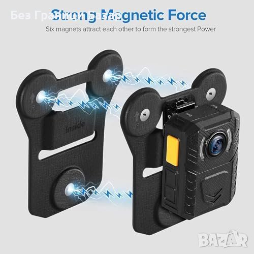 Мощни магнити: С 6 броя мощни магнити за стабилно закрепване на камерата към облеклото.