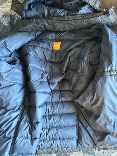 Мъжко яке от boss orange с капитониран силует тип бомбър, изработен от водоотблъскваща техническа материя, за да създаде това стилно право яке. Със своята фуниевидна яка, подвижна качулка и еластичен подгъв и маншети, oberon предлага отлична защита при всякакви атмосферни условия и е завършен с емблематичната марка Boss на ръкава.