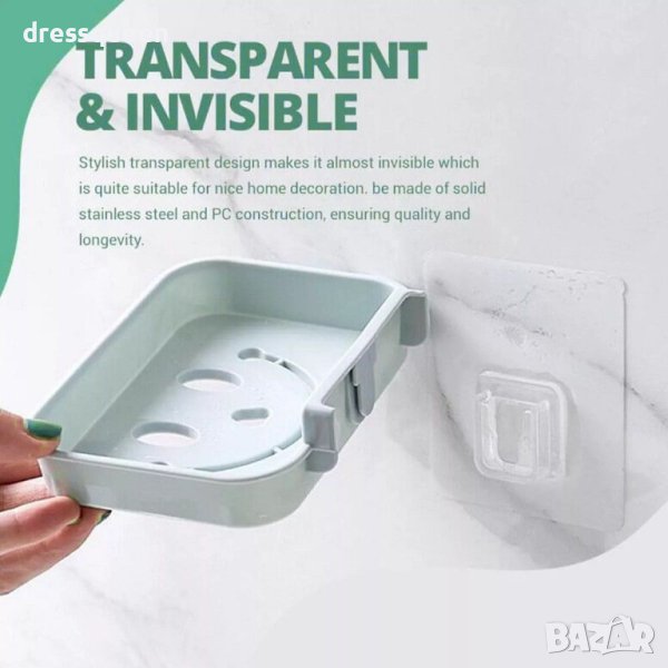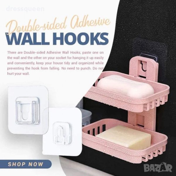 Комплектът съдържа чифт от 2 бр. прозрачни лепенки (съвместими една с друга, поставяши се на стената и предмета, който ще закачите за нея с кукички.