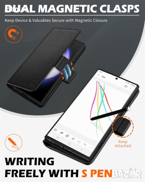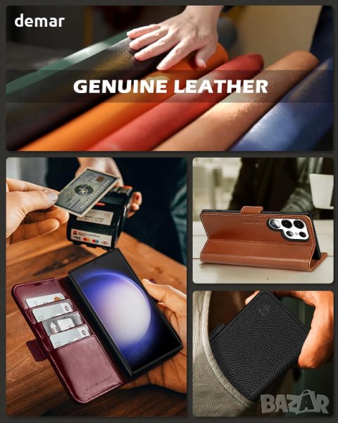 Изработен ексклузивно за Galaxy S24 Ultra 6,8 инча (издание през 2024 г.), този калъф от естествена кожа се отличава с класическа шарка на личи, предлагаща елегантност и издръжливост с конструкцията си от пълнозърнеста телешка кожа. Той е проектиран не само да предпазва телефона ви от прах, драскотини и удари, но и да рационализира вашите основни неща с функционалността на портфейла си, включващ 4 слота за карти и страничен джоб за вашите карти и пари. Подобрен с технология за блокиране на RFID, той предпазва вашата лична информация от неоторизирано сканиране. Калъфът осигурява прецизни изрези за лесен достъп, стойка за гледане за регулируеми ъгли и мека вътрешна обвивка от TPU за поглъщане на удара, осигуряваща цялостна защита и удобство за вашето устройство.