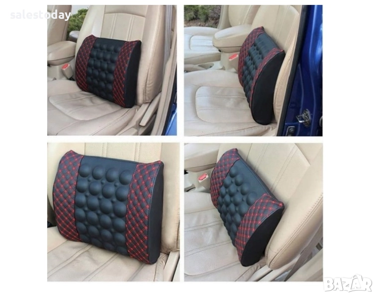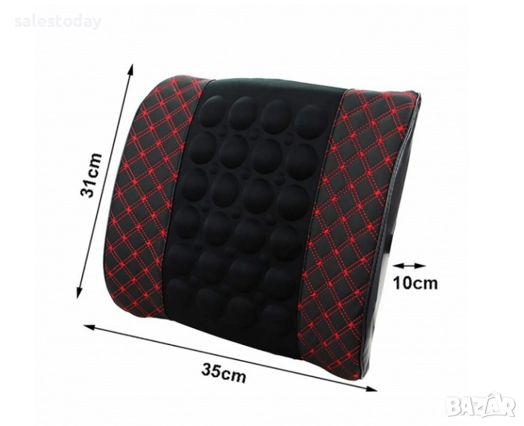 Идеална за вашия автомобил! Масажираща подложка за седалка 12V с червен кант, нова и готова да осигури комфорт на вашия гръб и врат.