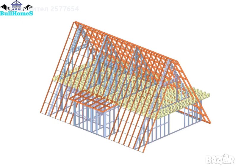 Преместваема къща А образна -176м2 - 89м² + 87м² етап Конструкция - готови за сглобяване профили.