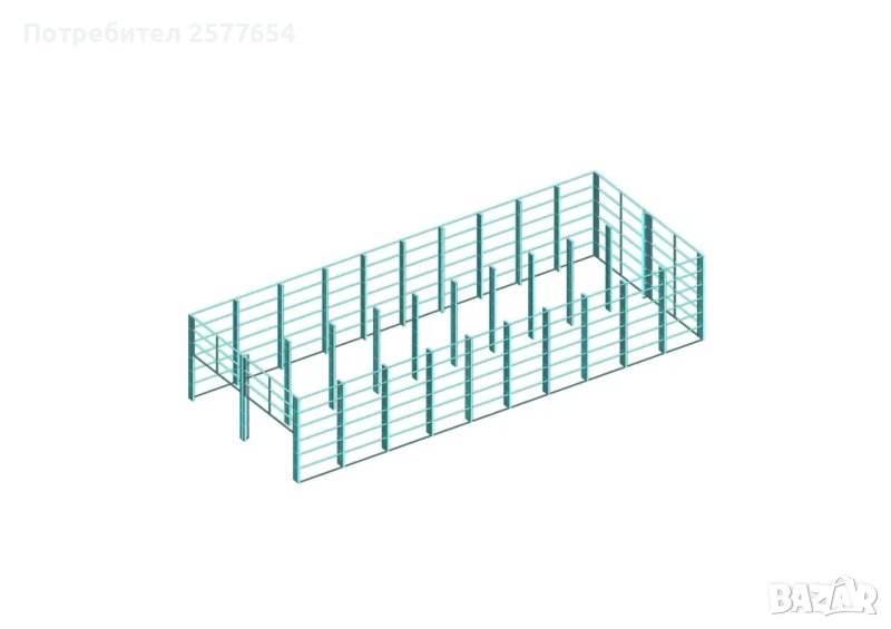 Конструкция за Хале, склад 400м2 - 12м х 30м х6м - етап Конструкция - готови за сглобяване профили. Халето е с предна двуетажна административна част , или магазин.