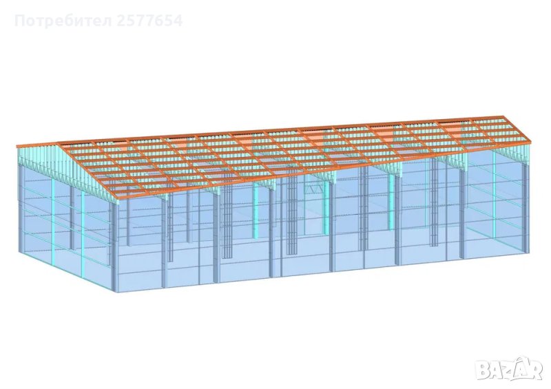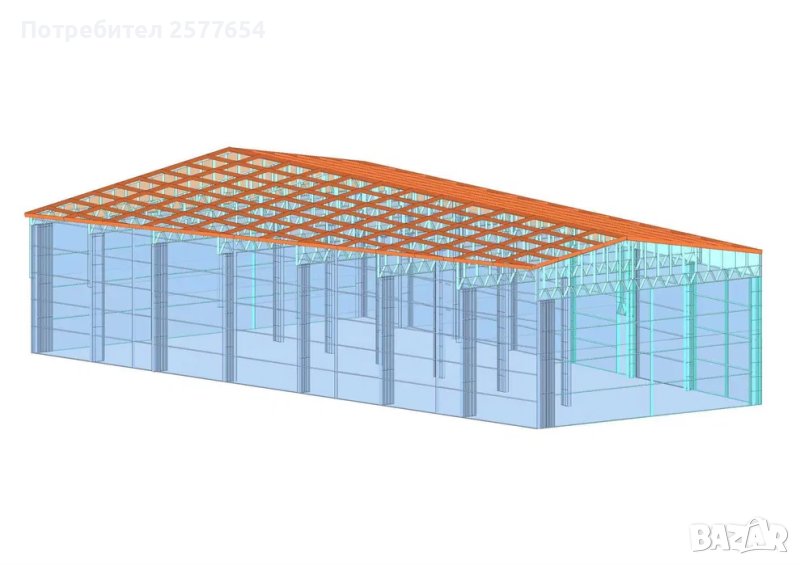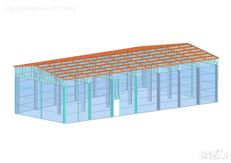 Хале, склад по задание -336м2- 14.00м х 24.00м х 4.50м- етап Конструкция - готови за сглобяване профили.