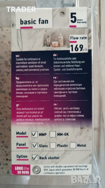 Тези ефектни модели ще допринесат за стила на Вашата баня. Вентилатори с челен стъклен или метален панел. Всички вентилатори от тази серия са снабдени с възвратна механична клапа, която отваря при работещ уред. Присъединяване към отвор ф100. За някои модели с помощта на преходен пръстен е възможно присъединяване на ф120.
