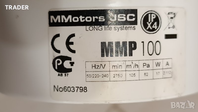 ВЕНТИЛАТОР ЗА БАНЯ MMOTORS JSC MMP 100