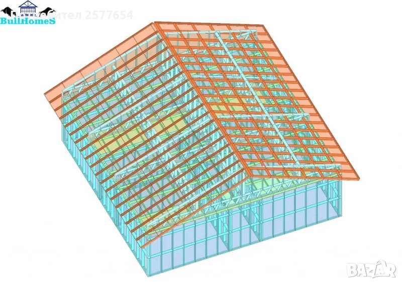 Конструкция за Хале,Магазини,Складове - 100м2 - 10м х 10м - етап Конструкция - готови за сглобяване профили.