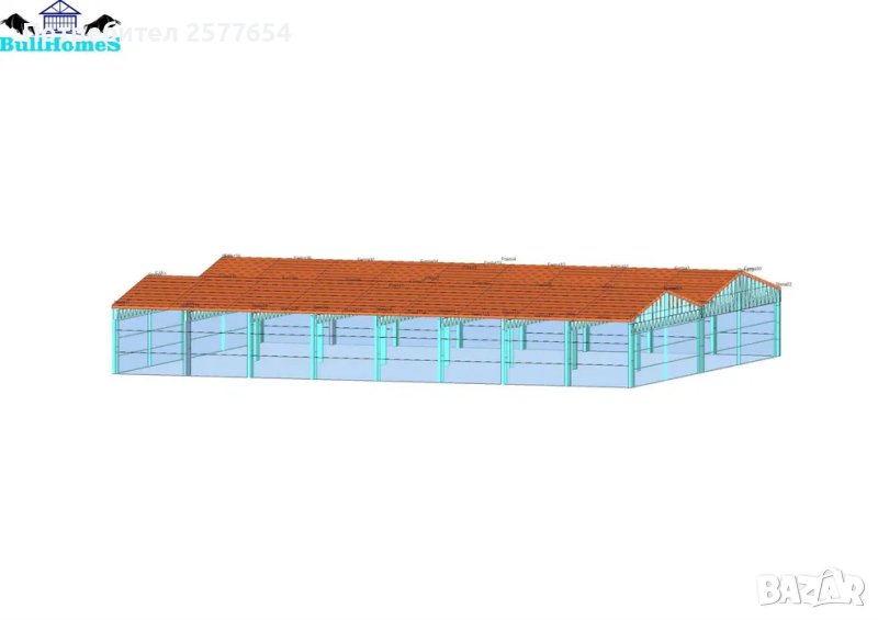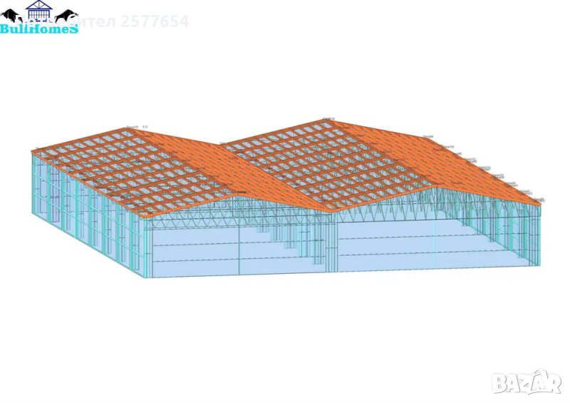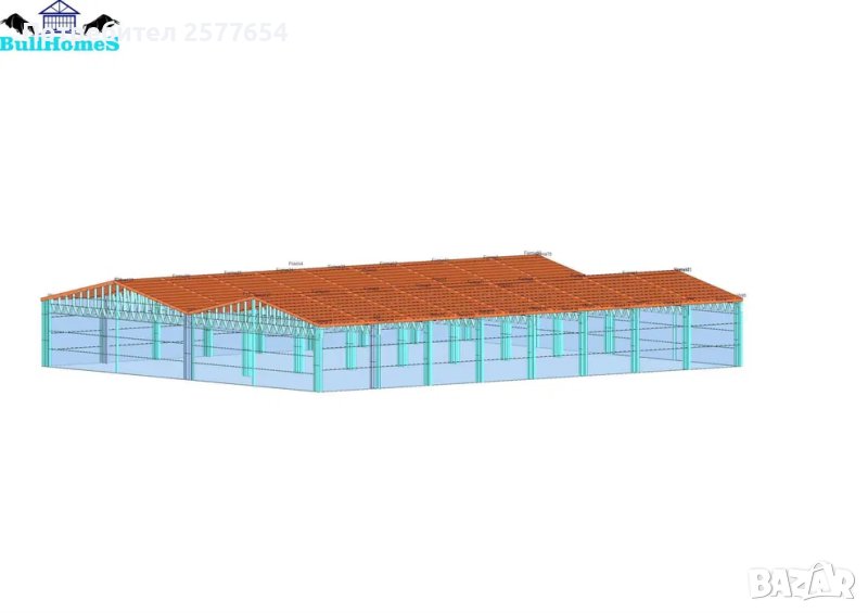 Хале 500м2 - 20.00м х 25.00м х 2.50м- етап Конструкция - готови за сглобяване профили.