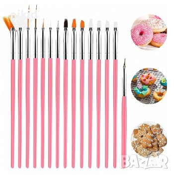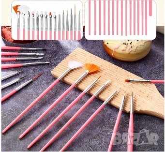 15 бр сет фини тънки тънка четка четки и точкатор сладкарски декорация торта и маникюр нокти → Обява 44210784
