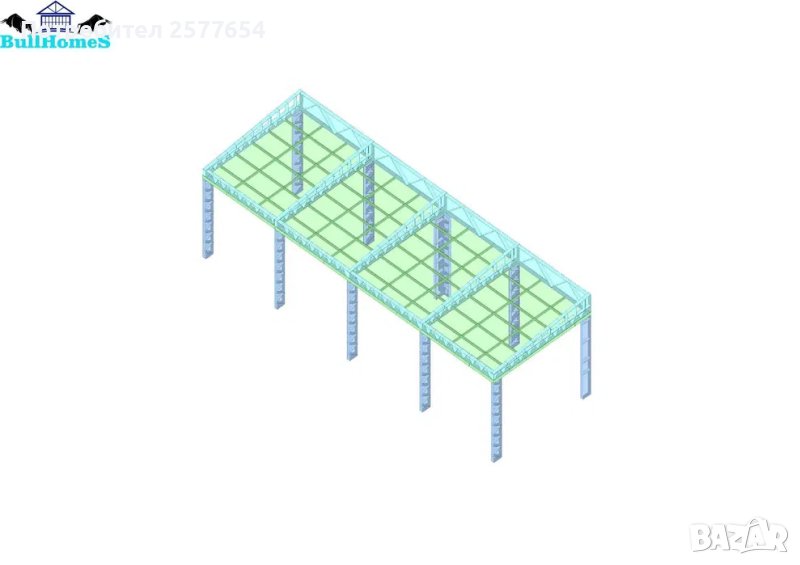 Конструкция за Хале,Склад - 75м² -5м х 15м - етап Конструкция- готови за сглобяване профили.