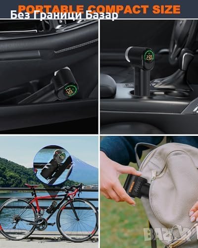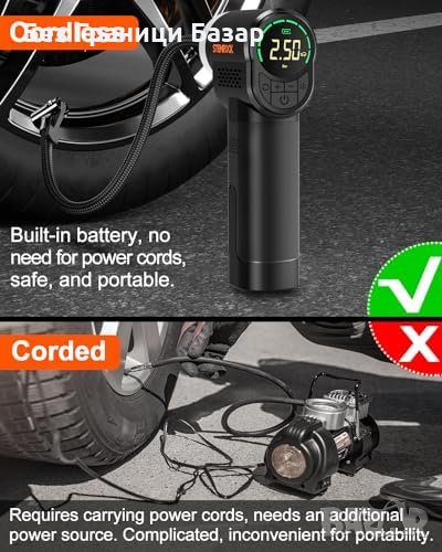 Нов Мощен Безжичен Компресор 150PSI с LED, 4 Дюзи, Универсален