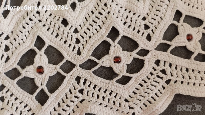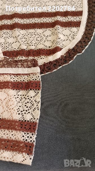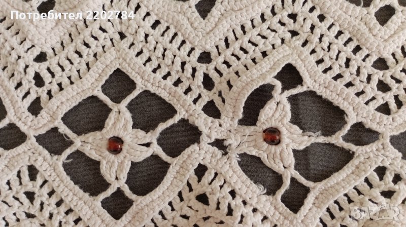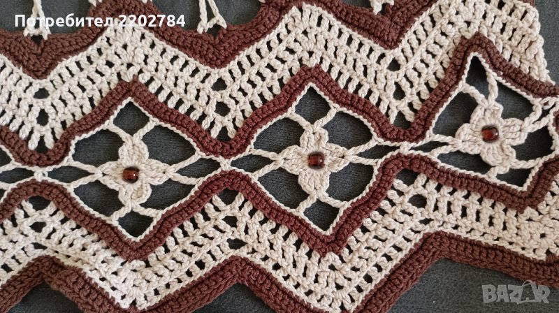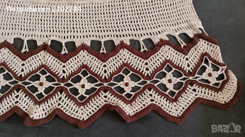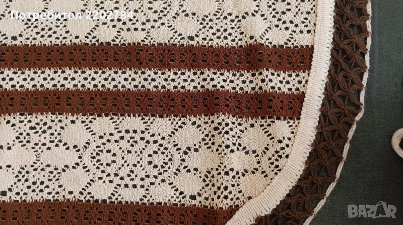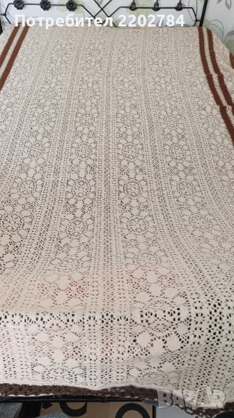 Последно е покривало за легло,машинно плетена дантела.Идеално си пасва с първите пердета .Обточено е с кафява дантела само от трите страни - от едната ширина няма.Много е красиво и не се мачка.