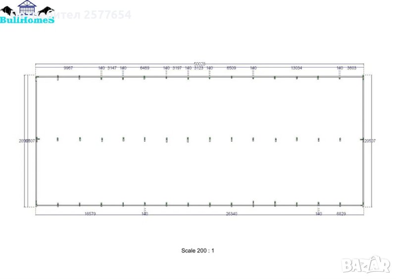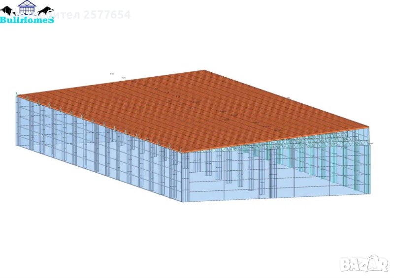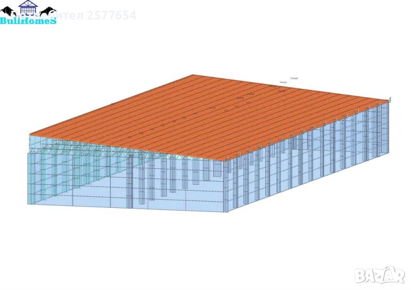 Хале, склад 1000м2 - 50.00м х 20.00м - етап Конструкция - готови за сглобяване профили.