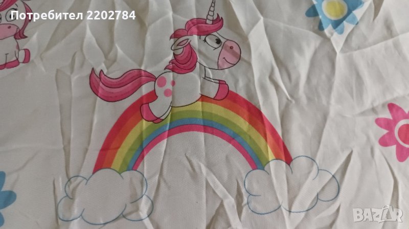 Пердето с еднорозите и дъга е ново, неизползвано.Размери: ширина 140см,дължина 220см.