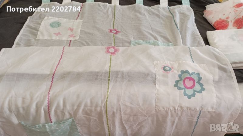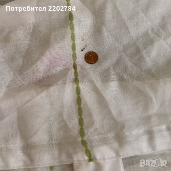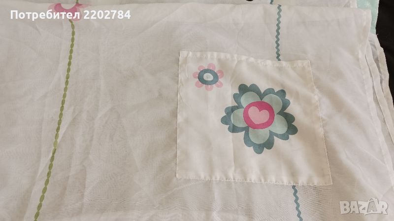 Трети са комплект от две пердета от памук с джобове по тях.Нови,не са употребявани,на едното има миниатюрна точица - на последната снимка.Два броя.Много нежни.За тръбен корниз.